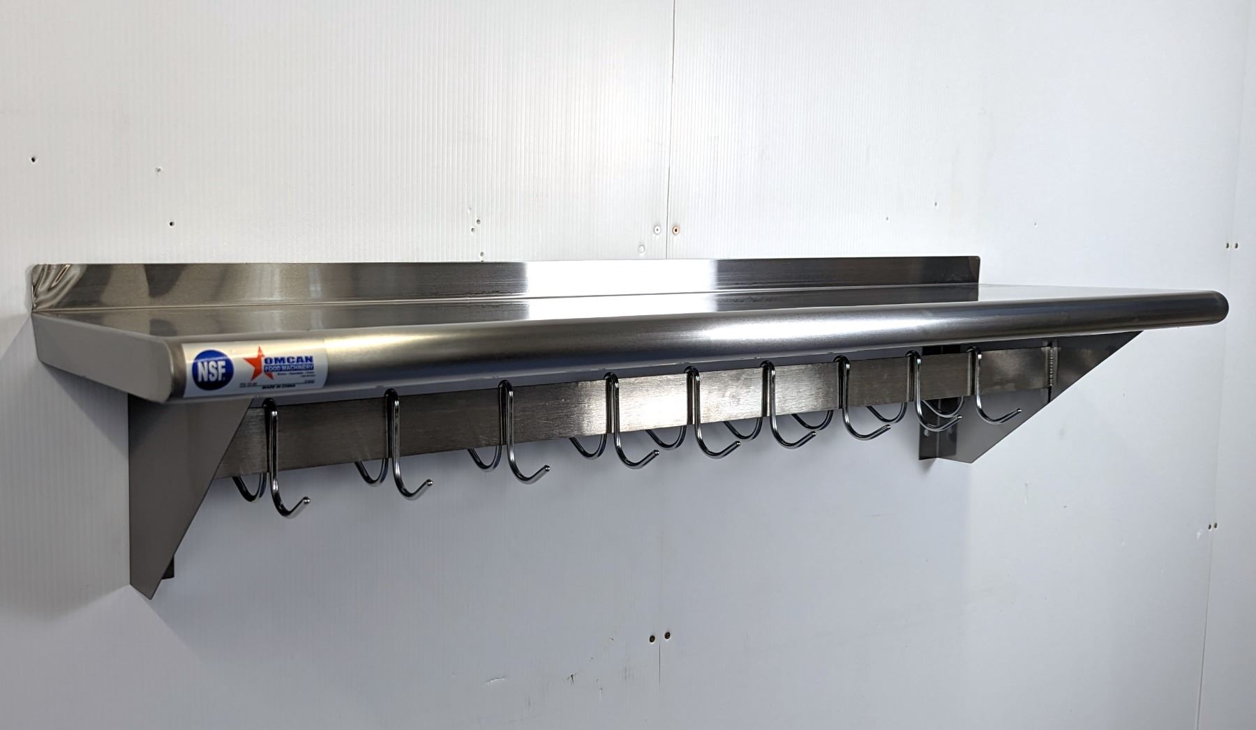 48" x 12" Stainless Pot Rack with Shelf, Omcan 31852| MR6-2