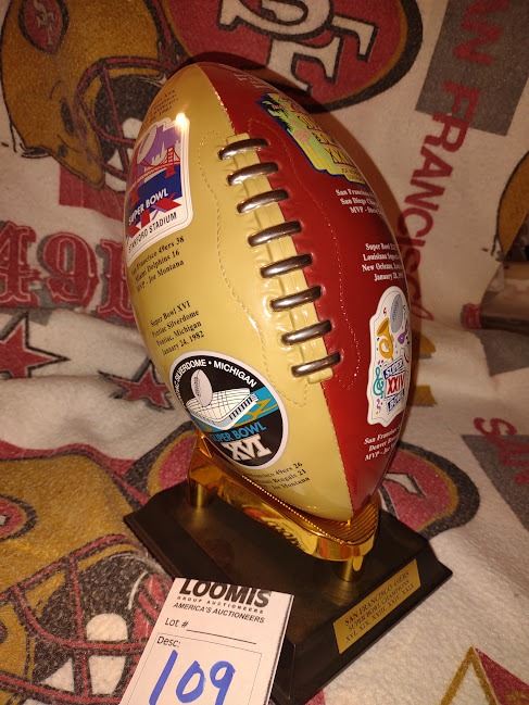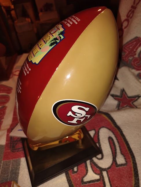 49ERS 5 X SUPER BOWL LIMITED EDITION FULL SIZE HARD BALL ON STAND