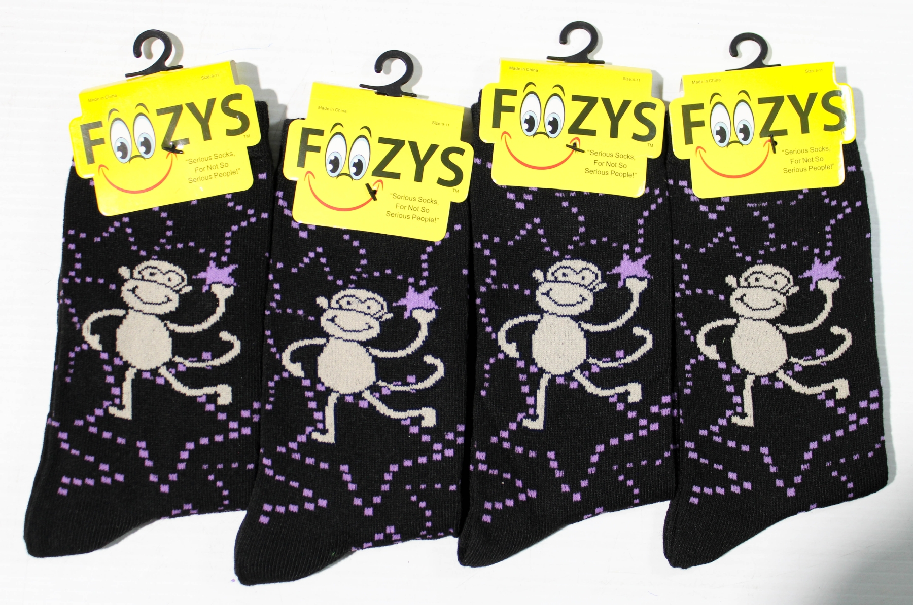 4PR NEW UNISEX FOOZYS SOCKS - MONKEY - BLK