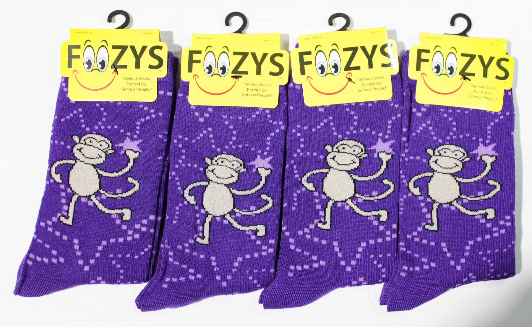 4PR NEW UNISEX FOOZYS SOCKS - MONKEY - PURPLE