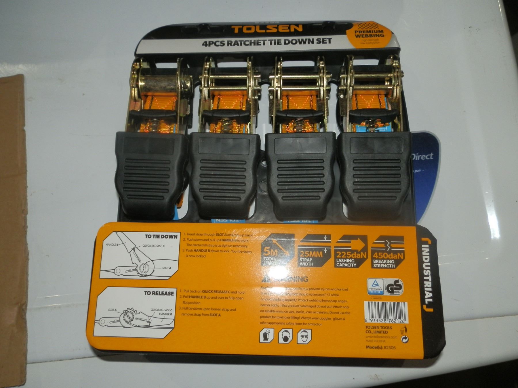 Tolsen 4pc Ratchet Tie Down Set, 5 meter strap length...New