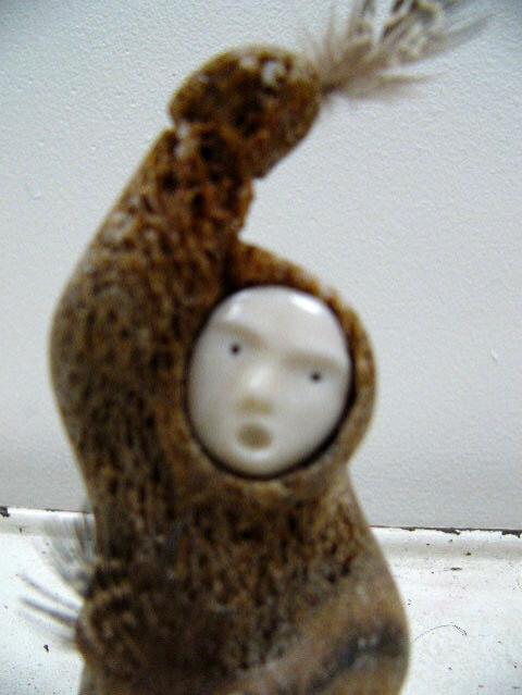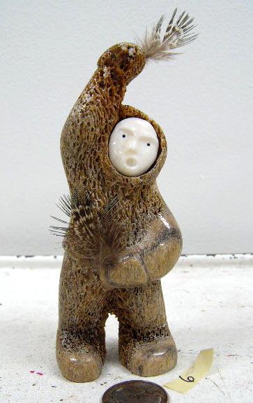 5-1/2" bone carved man with white ivory face (114)