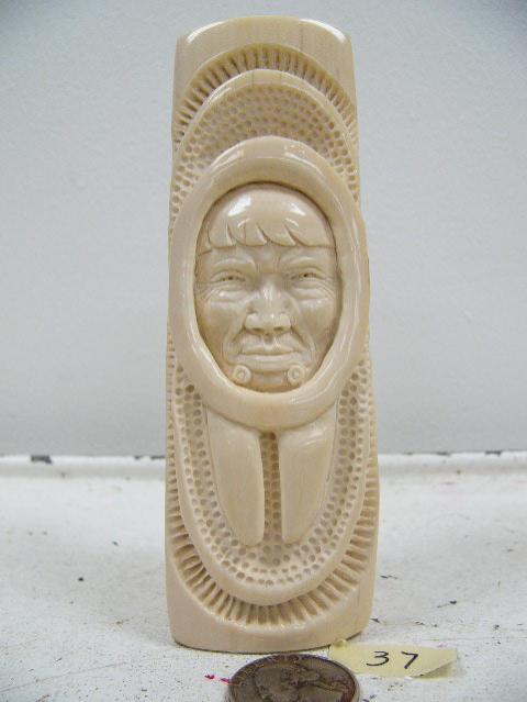 5-1/2" mammoth ivory carved walrus man by Richard Miller (114)