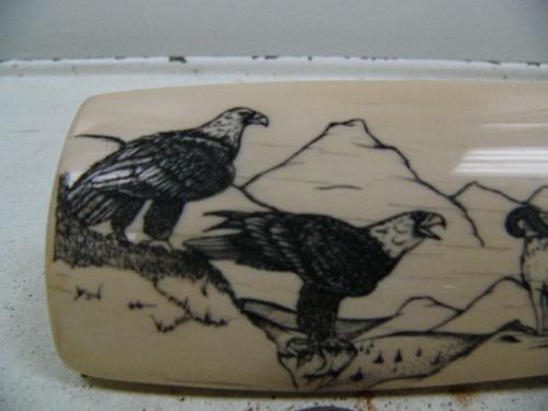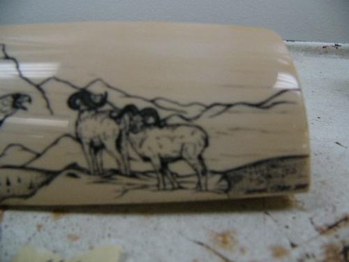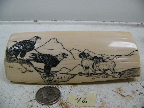 5-1/2" scrimshawed mammoth ivory of 2 eagles and 2 dall sheep by Homer Cole (114)