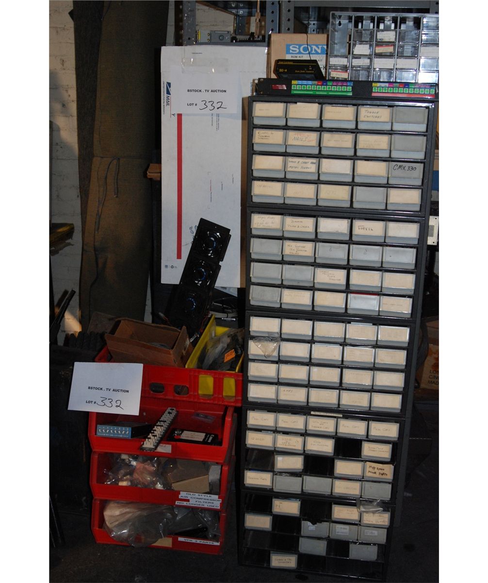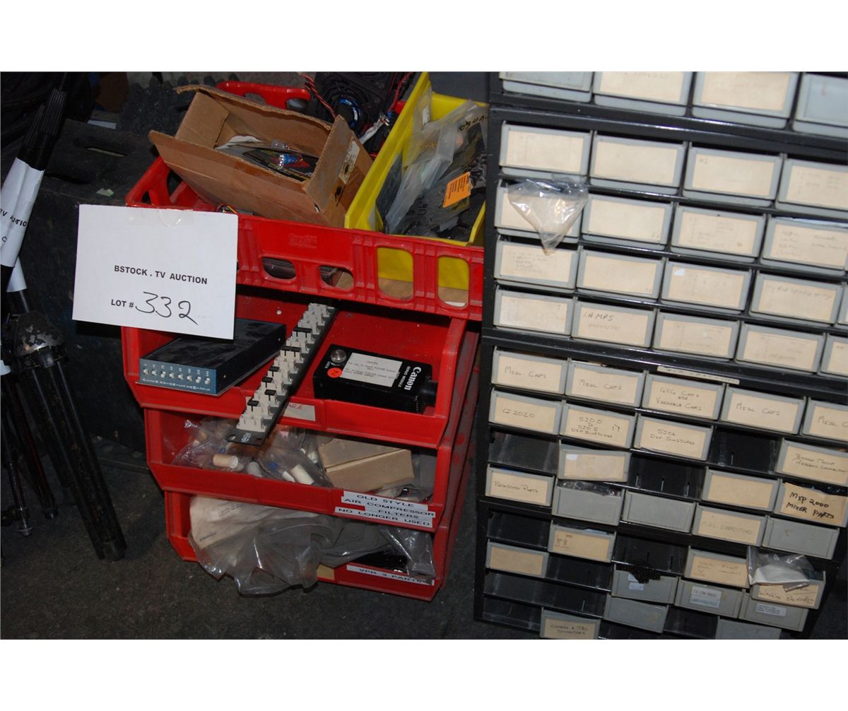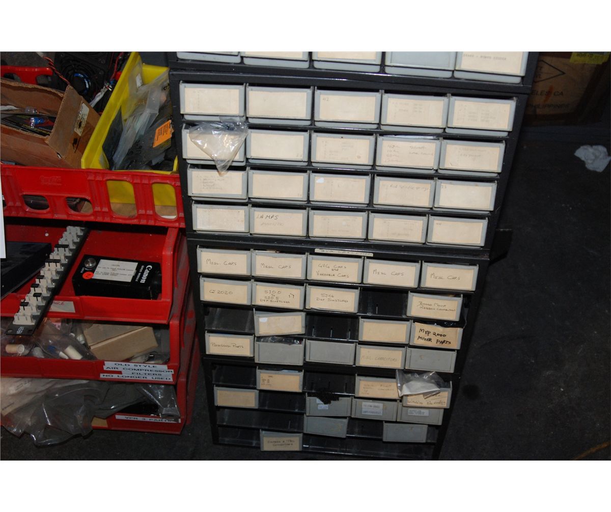 5 - 20 Slot Metal Parts Bins With Assorted Electronic Repair Parts - Most NOS (1 Lot)+ Extras