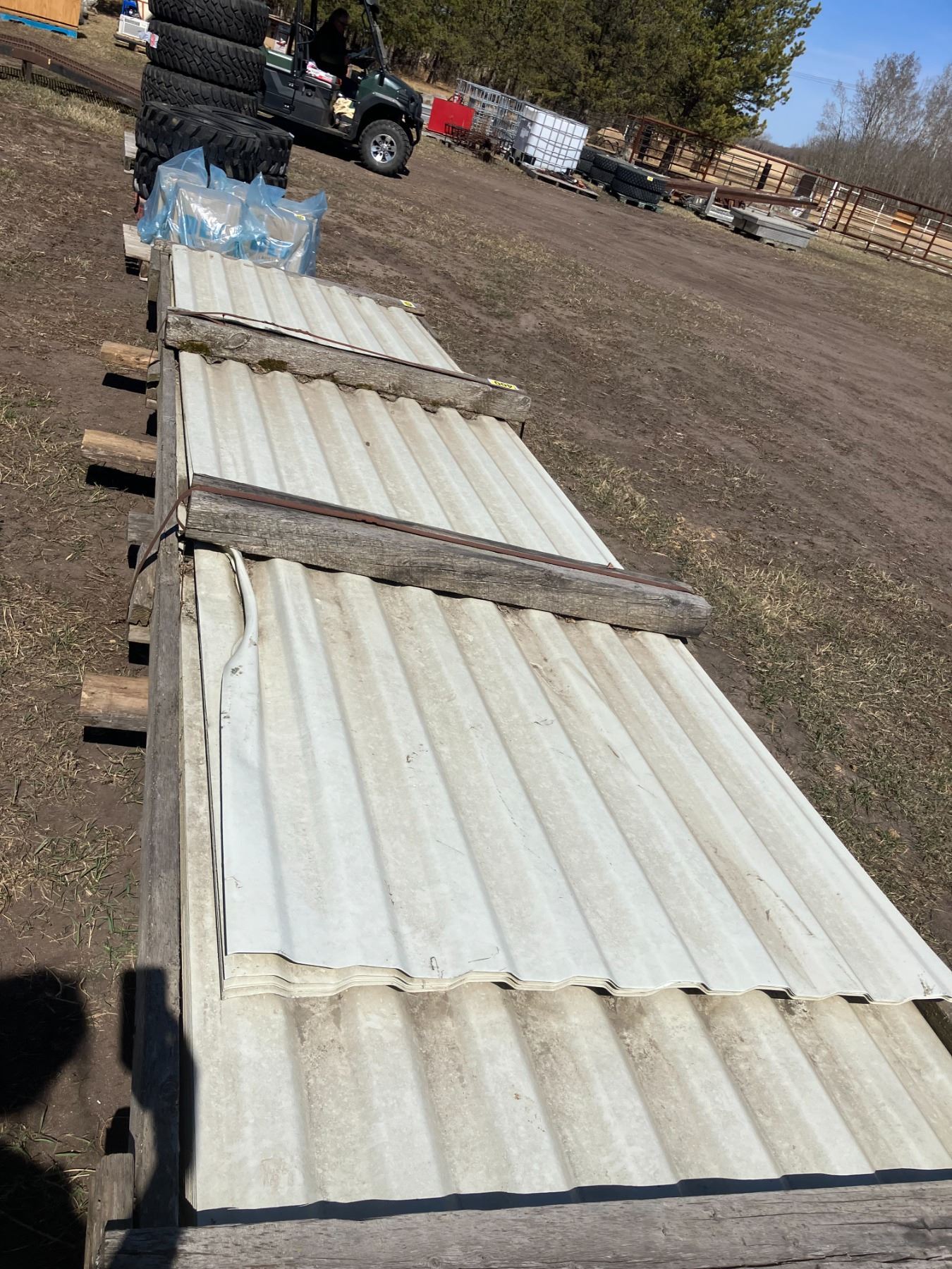5- 47" x 172" sheets of metal clad, white/beige, 2- are bent on the side (Selling all together)