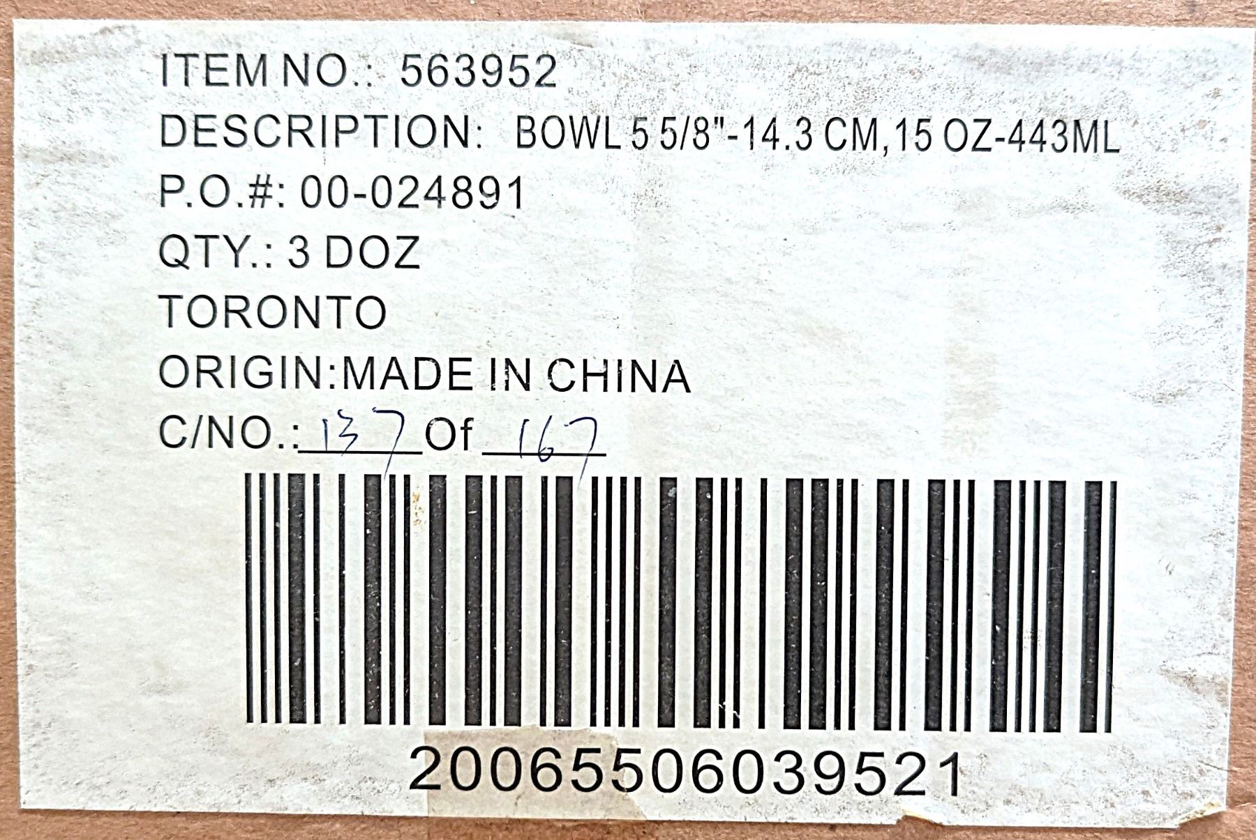 5-5/8" Bowls, Browne 563952 - Lot of 36 (1 Case)| R6-1