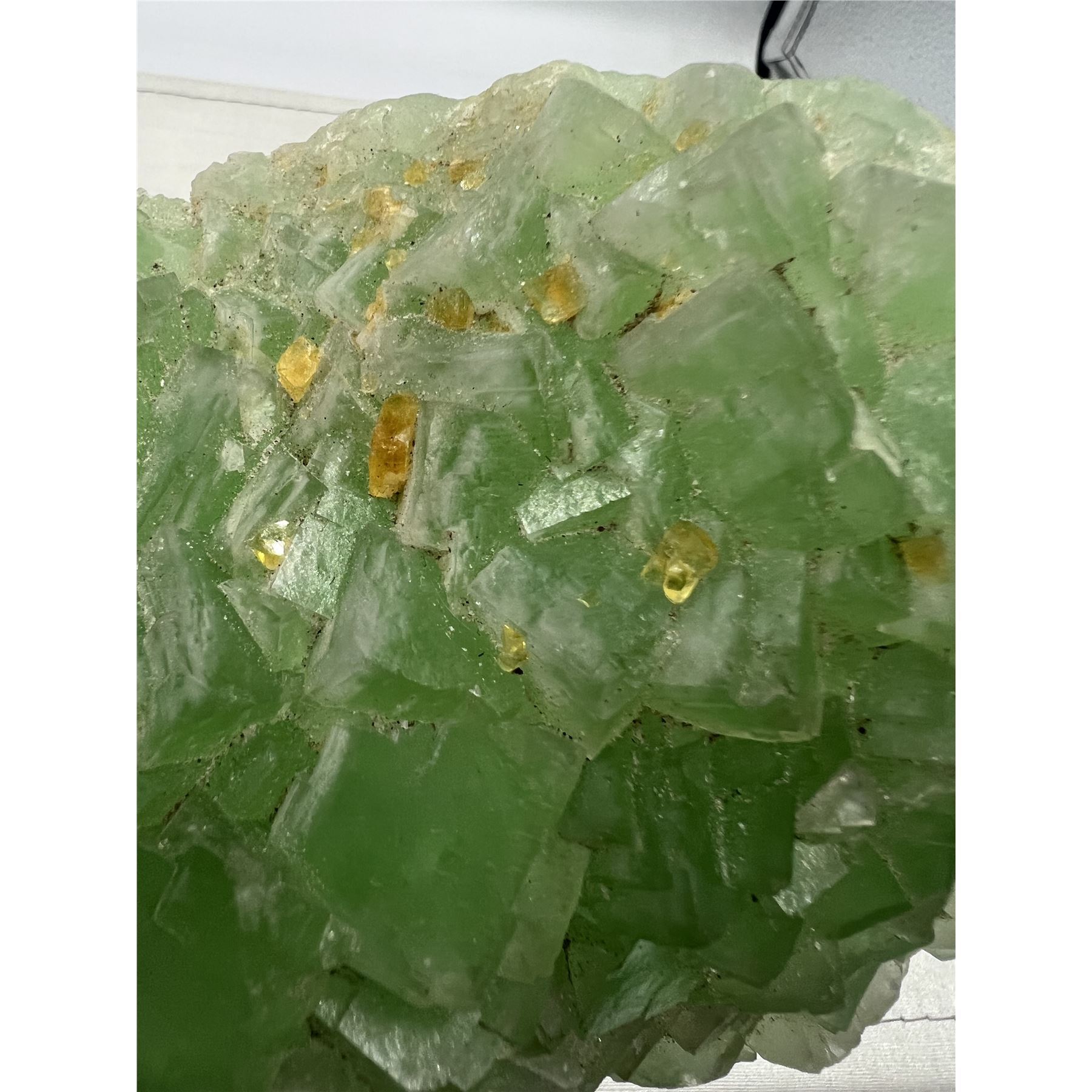 5.88 X 3.65 INCH GREEN FLUORITE WITH YELL0W BARITE SPECIMEN RETAIL $800