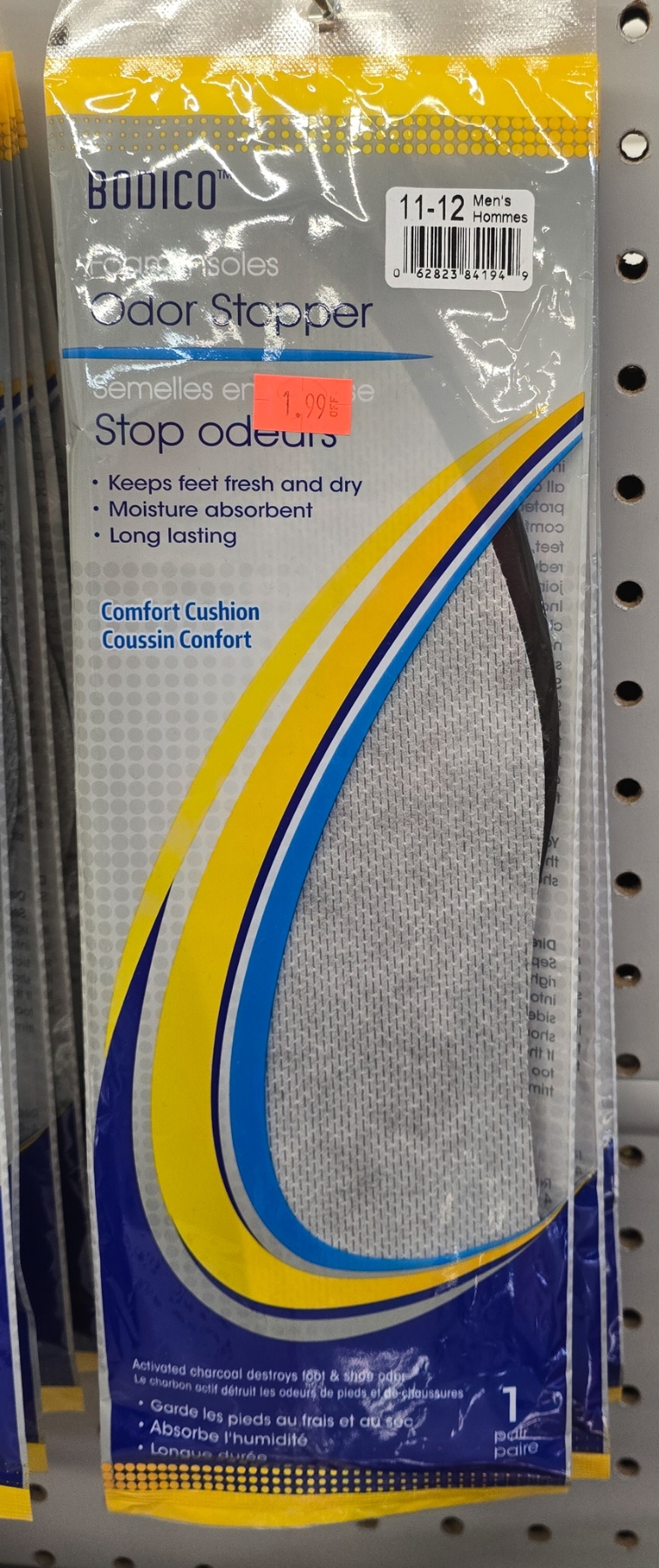 5 BODICO MENS 11-12 FOAM INSOLES W/ ODER STOPPER