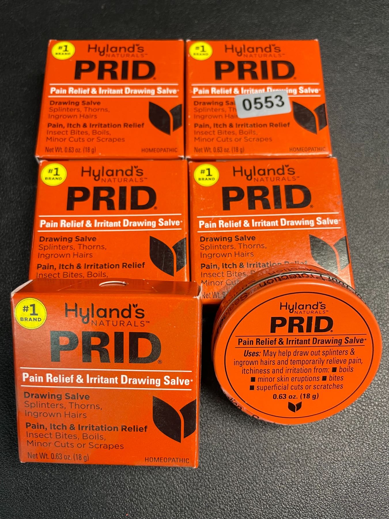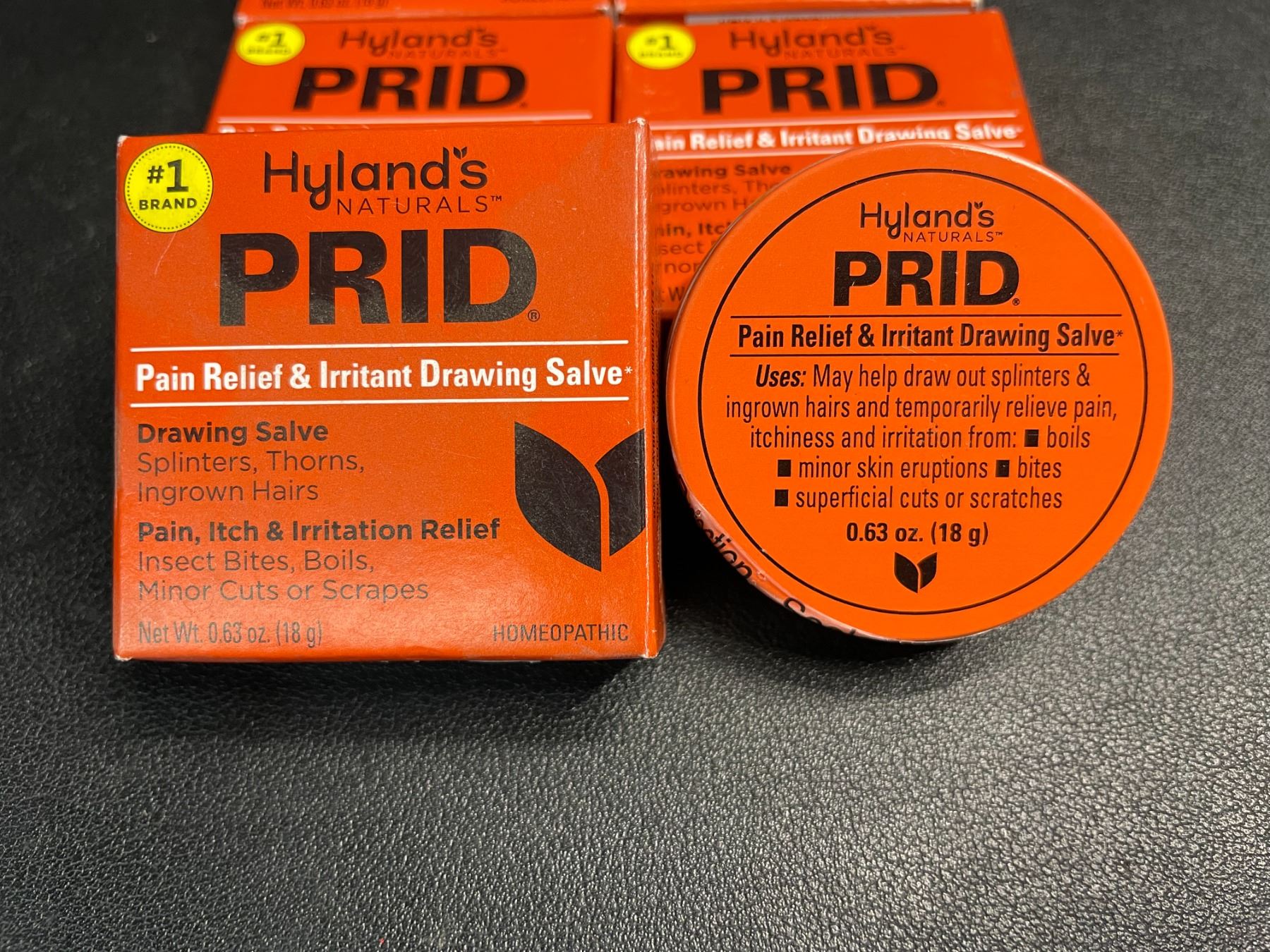 - Hyland's PRID Drawing Salve, Topical Skin Irritation Relief, For Splinters, Thorns, Ingrown Hairs, Itch Relief for Bug Bites, Boils, Minor Cuts and Scrapes, 18 Grams Each
