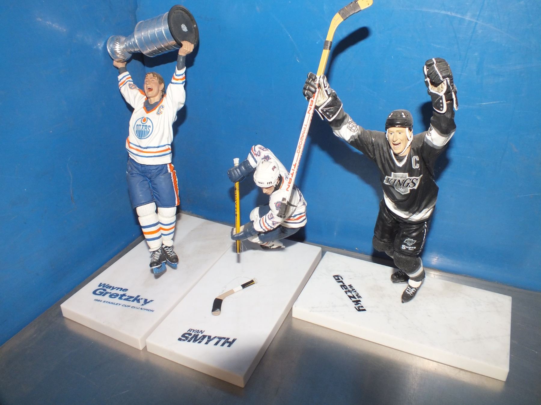 5 McFarland Hockey Figurines, you get 4 Wayne Gretzky's and 1 Ryan Smyth has broken stick...used