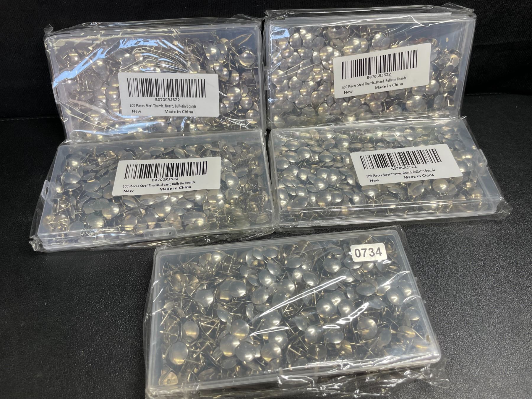 5 Packs of Steel/Heavy Duty Thumb Tacks (600PCS Each) - New