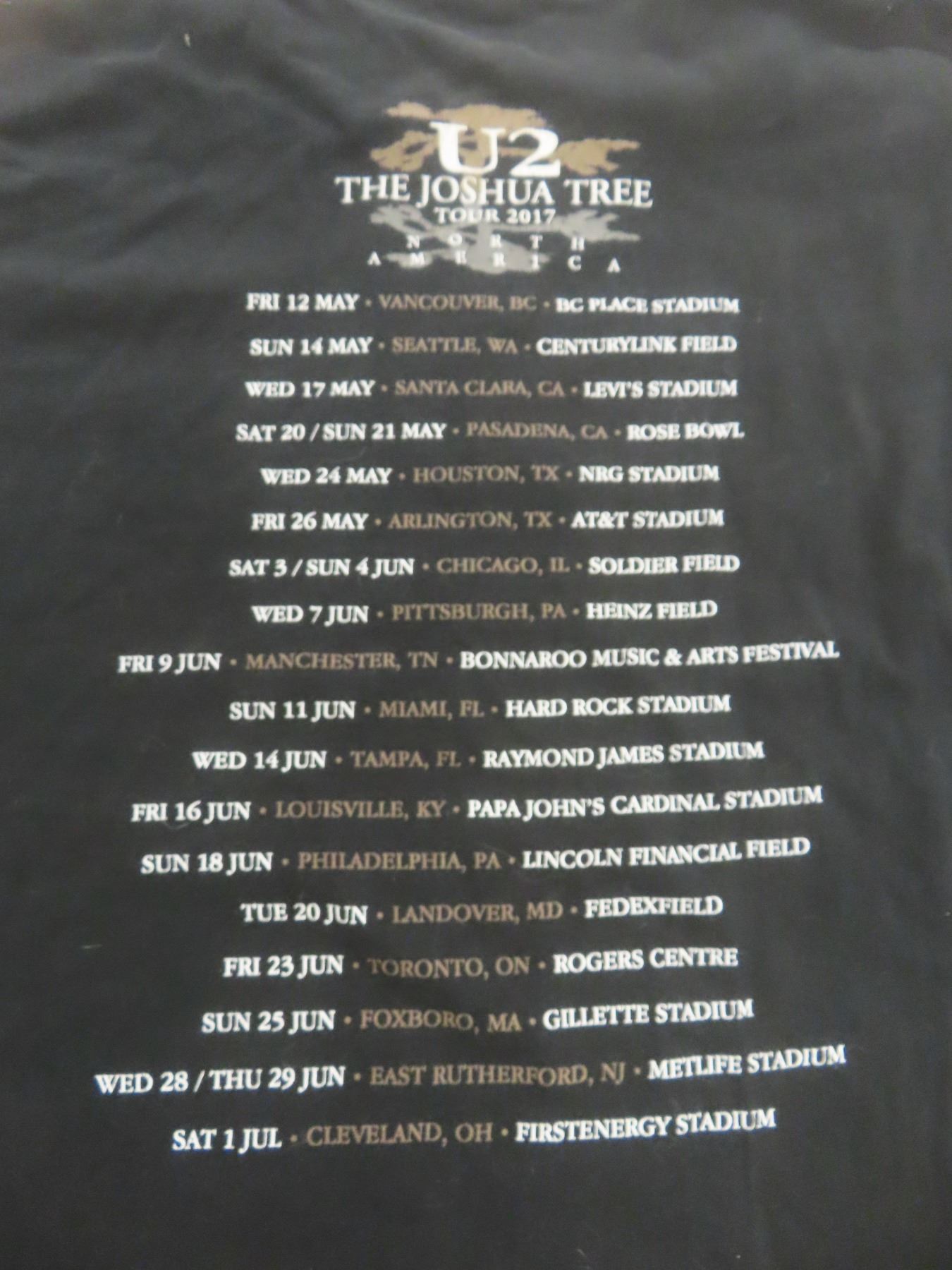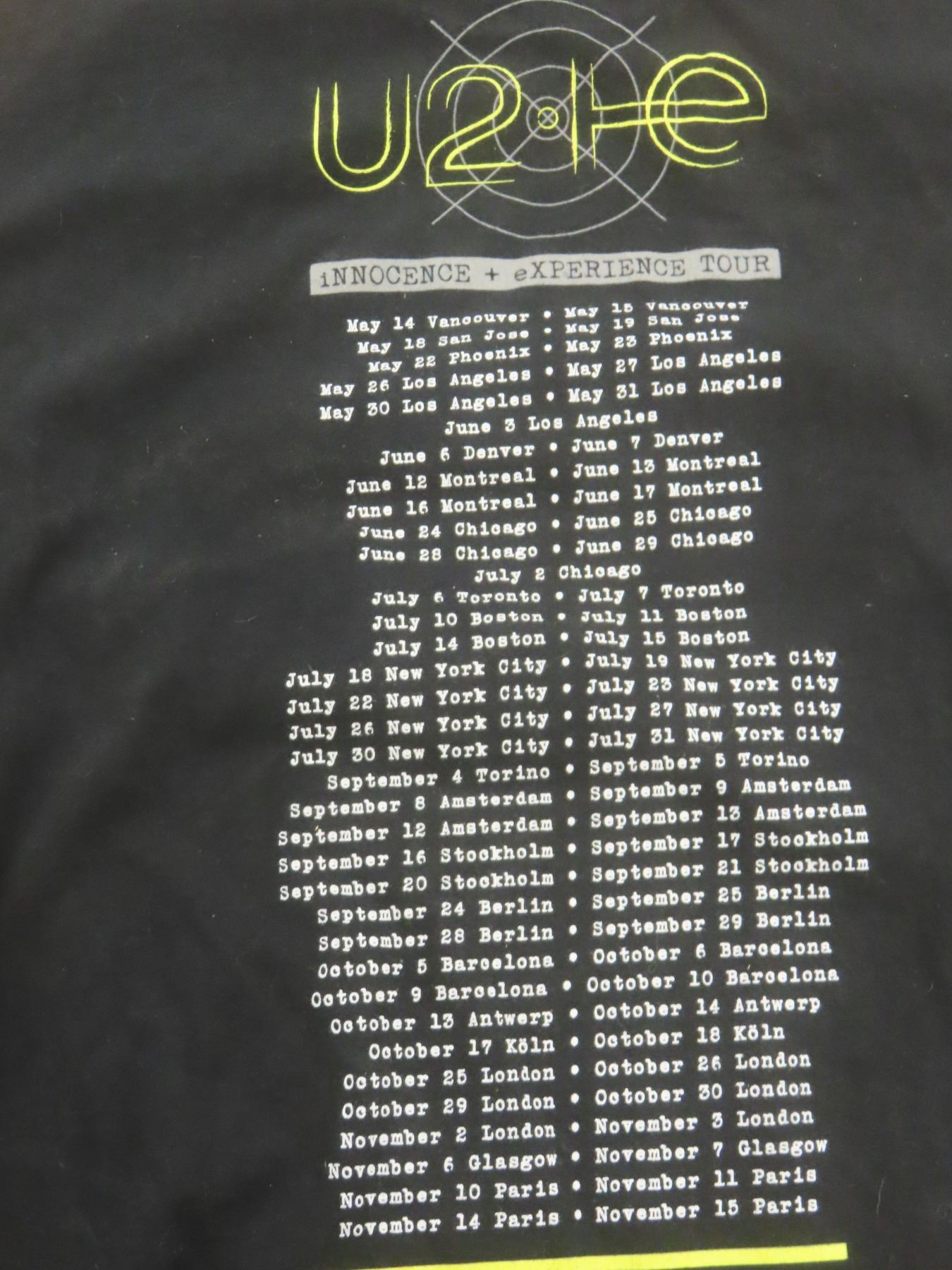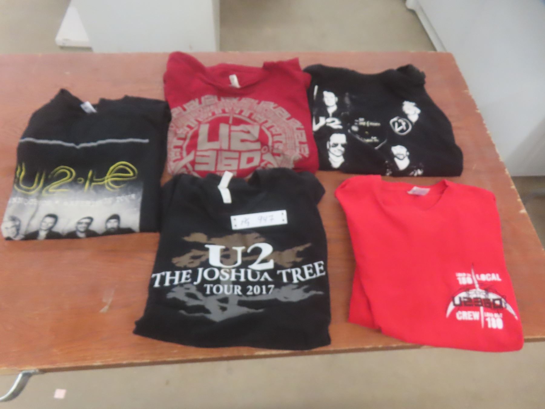 5 U2 Band T-Shirts, Sizes XL and 2XL, From 360 Tour, Joshua Tree Tour, and Songs of Innocence & Exp