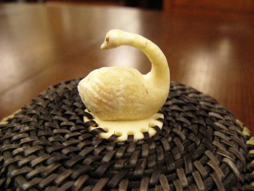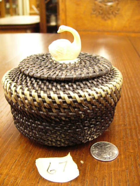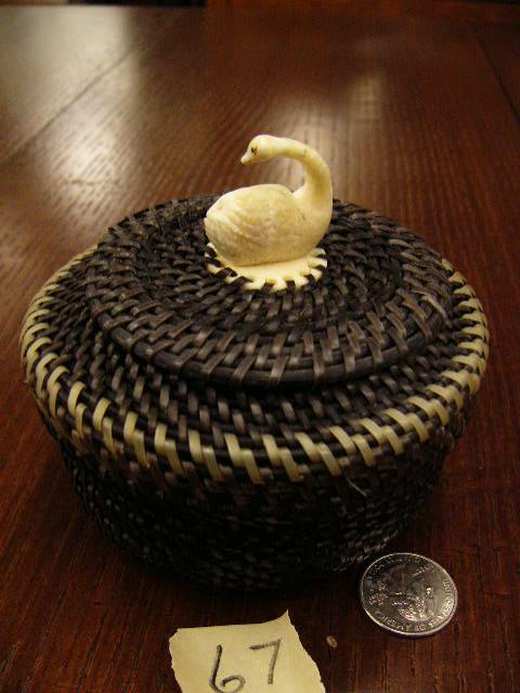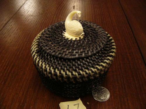 5" baleen basket with white baleen rim, has ivory swan finial by Julian Rentinger (2)