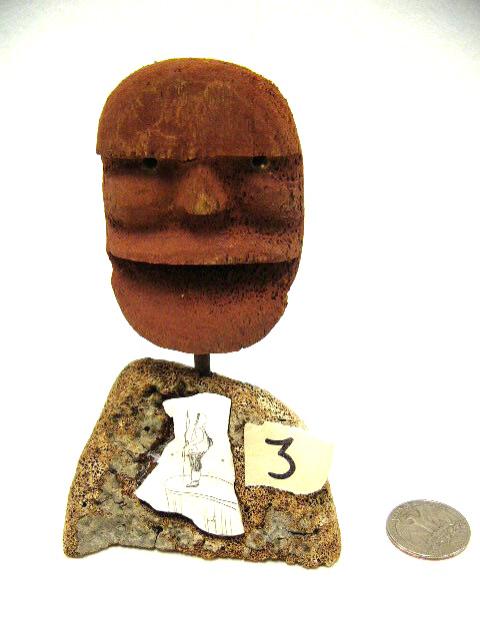 5" bone carving of face on stone base with scrimshawed ivory inset (2)