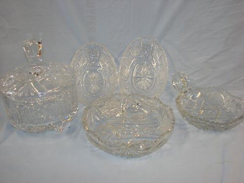 5 pcs of crystal,nappy, relish dishes, footed candy disn