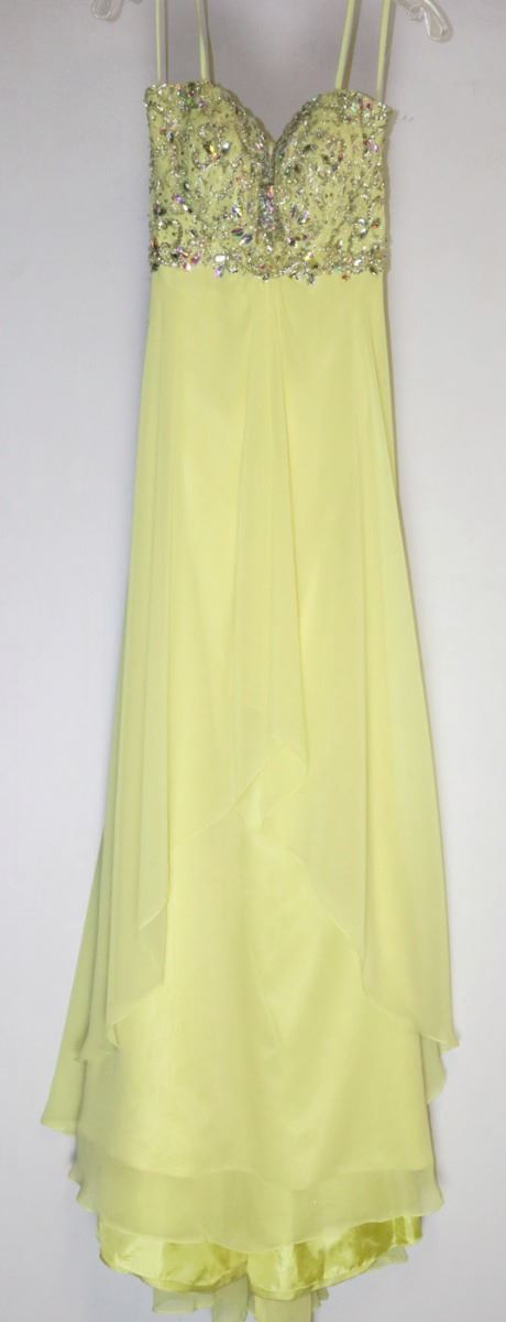 53-LIGHT YELLOW BACKLESS LACE GOWN SIZE 7/8
