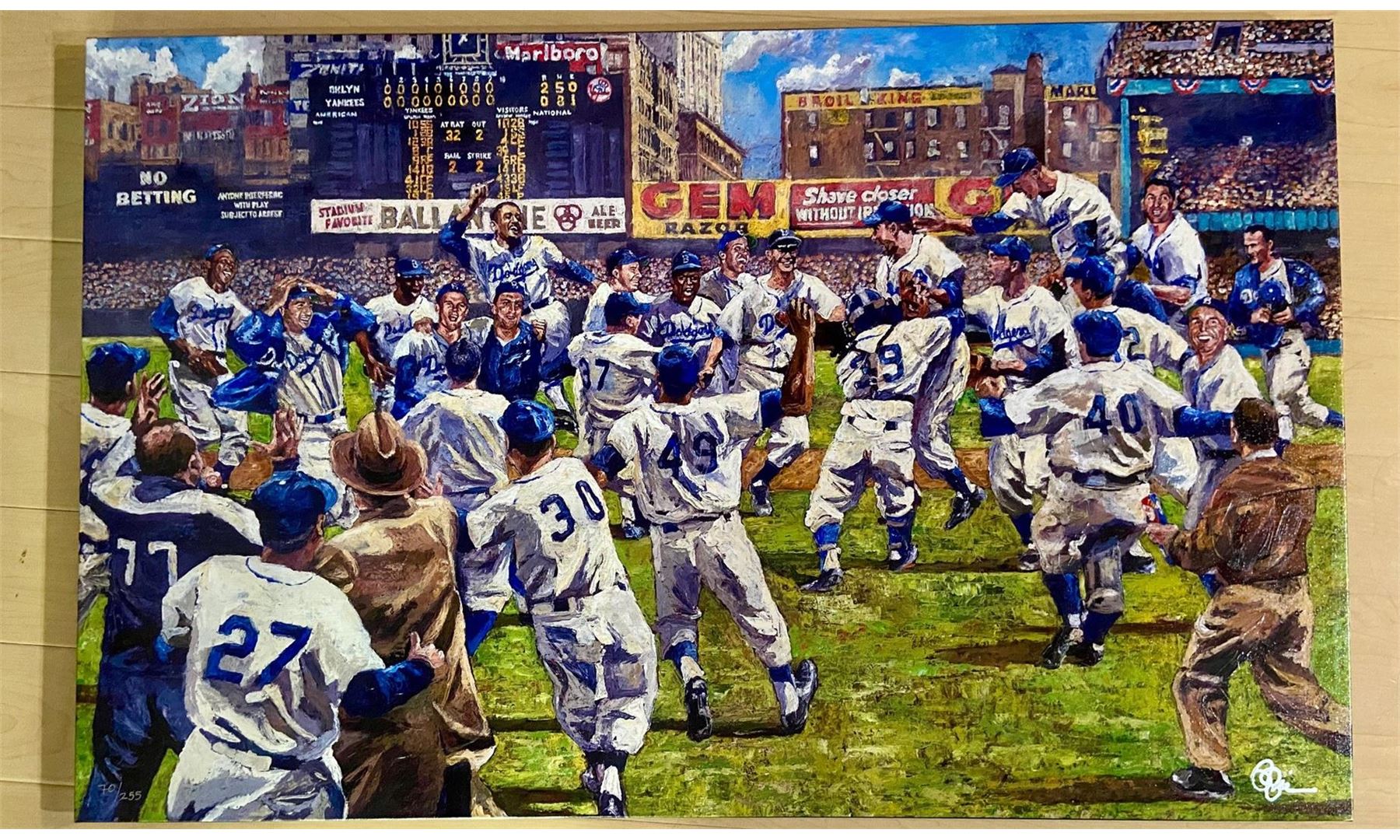 Otterstad captures the excitement of the '55 Brooklyn Dodgers winning the World Series in this 27x43 stretched, hand-embellished giclee on canvas, ready for hanging
