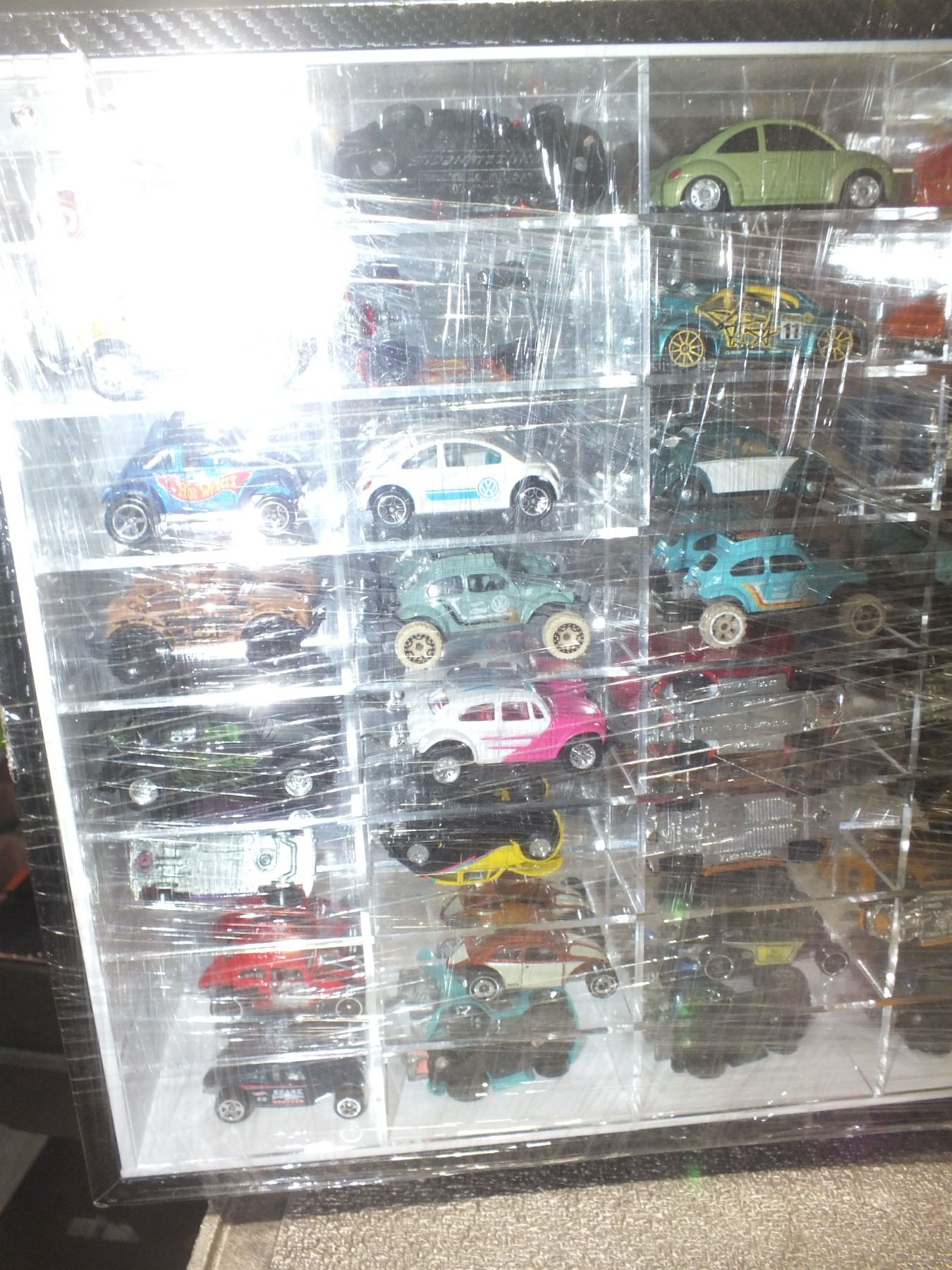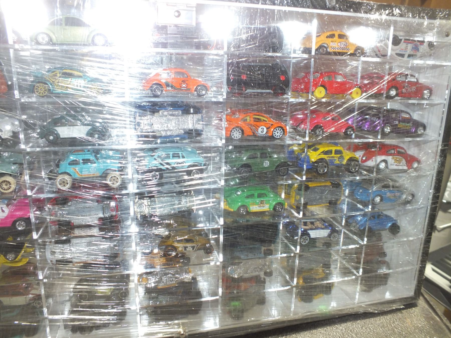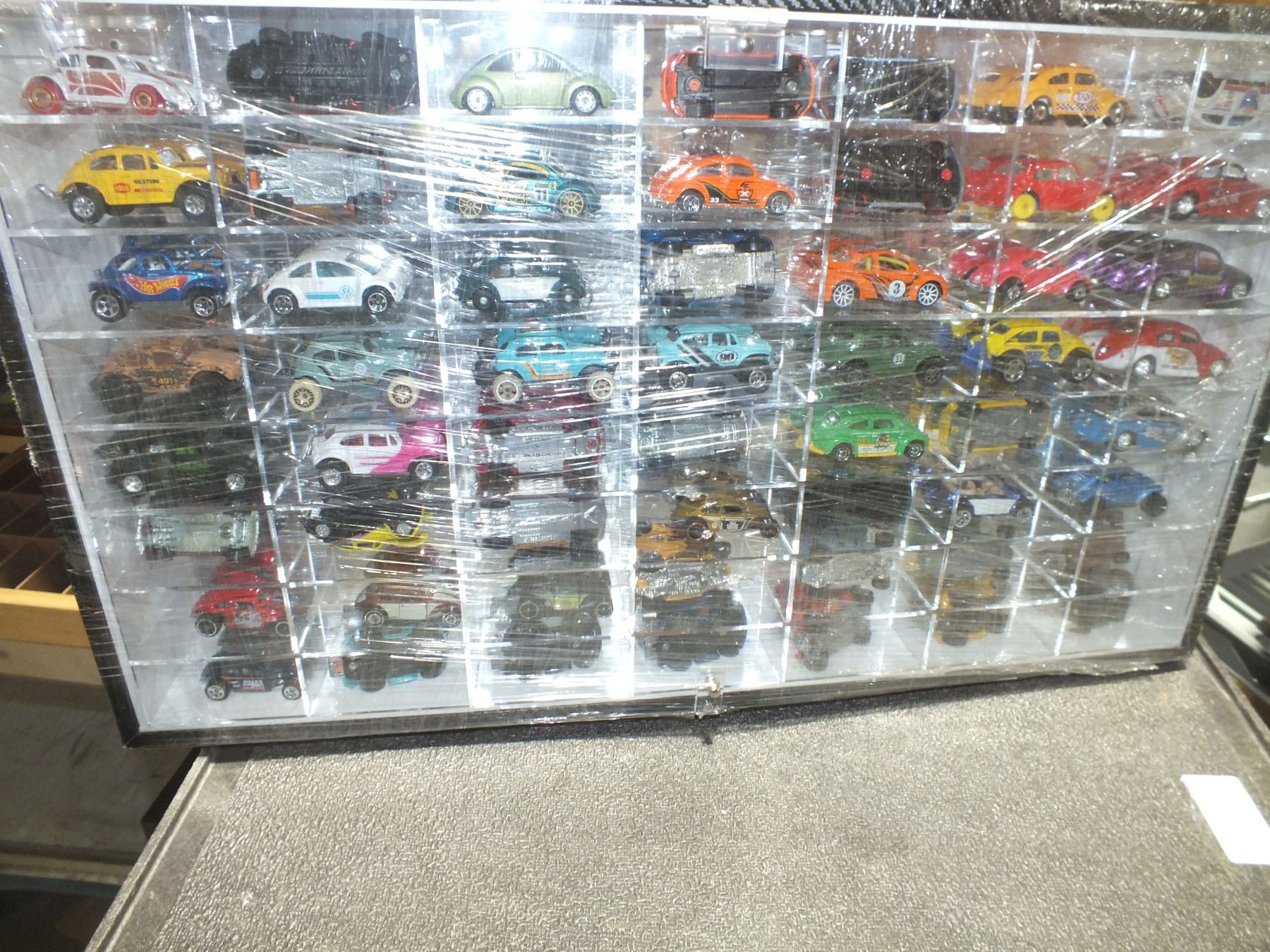 56 Assorted Diecast Cars In Display Case...sold as is / where is...used