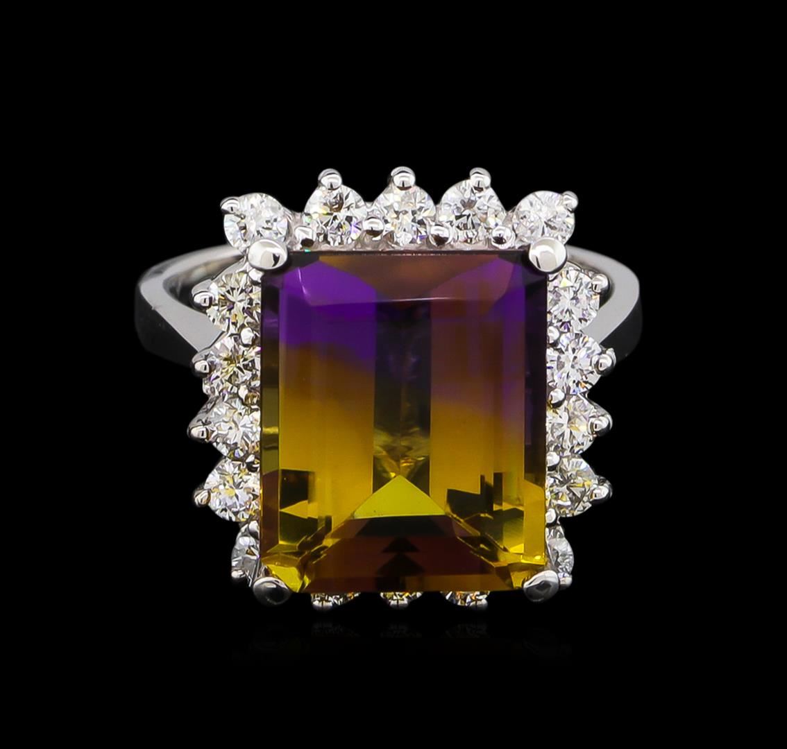One ring featuring: 14KT white gold weighing 5.61 grams containing one ametrine with a total weight of 6.00 ct and side diamonds with a total weight of 0.76ct.