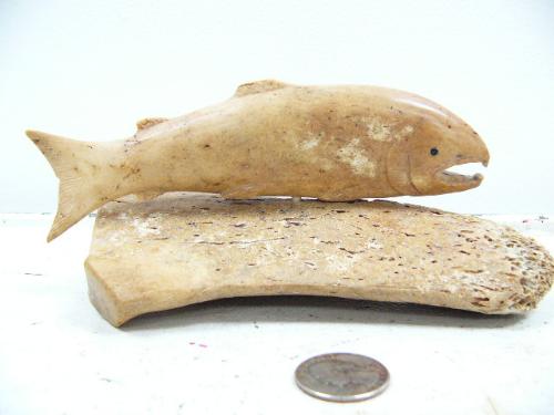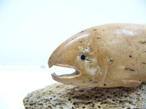 6-1/2" carved bone salmon- imported (114)