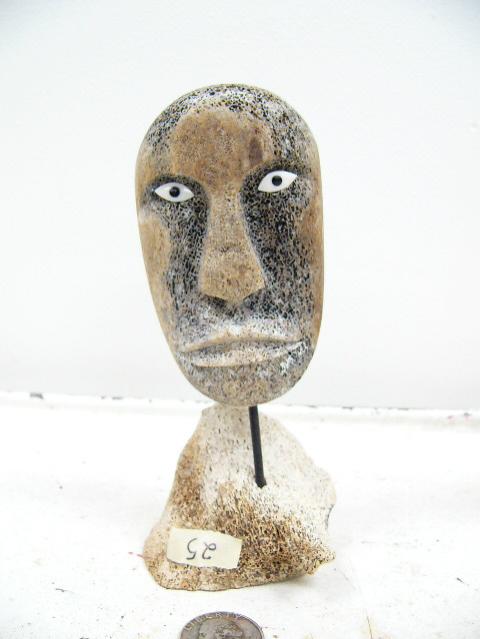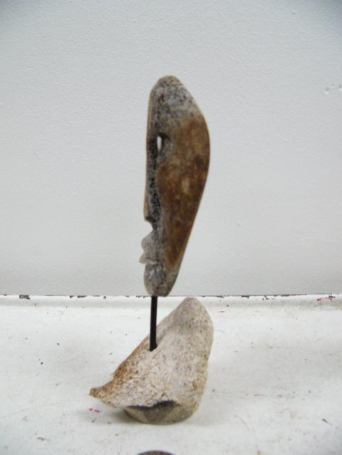 6-1/2" whale bone mask with inset baleen and ivory eyes carved by JHK (114)