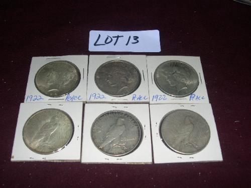 (6) 1922 PEACE SILVER DOLLARS