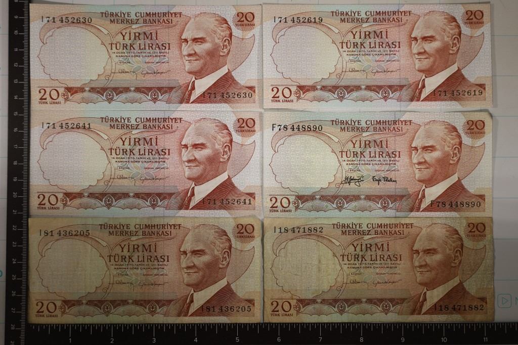 6-1970 TURKEY 20 LIRASI BILLS: 3 CU AND 1 CRISP AU