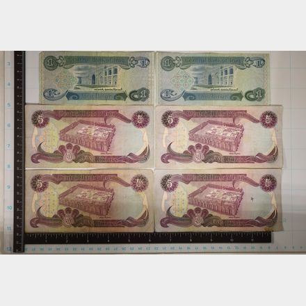 ONE OF THE FIVES HAS A TAPED ON CORNER