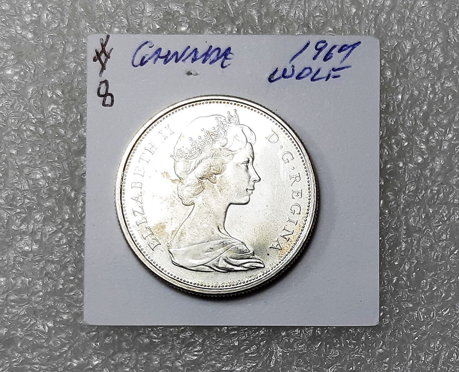 6) CANADIAN 1967 SILVER WOLF 50 CENT COIN