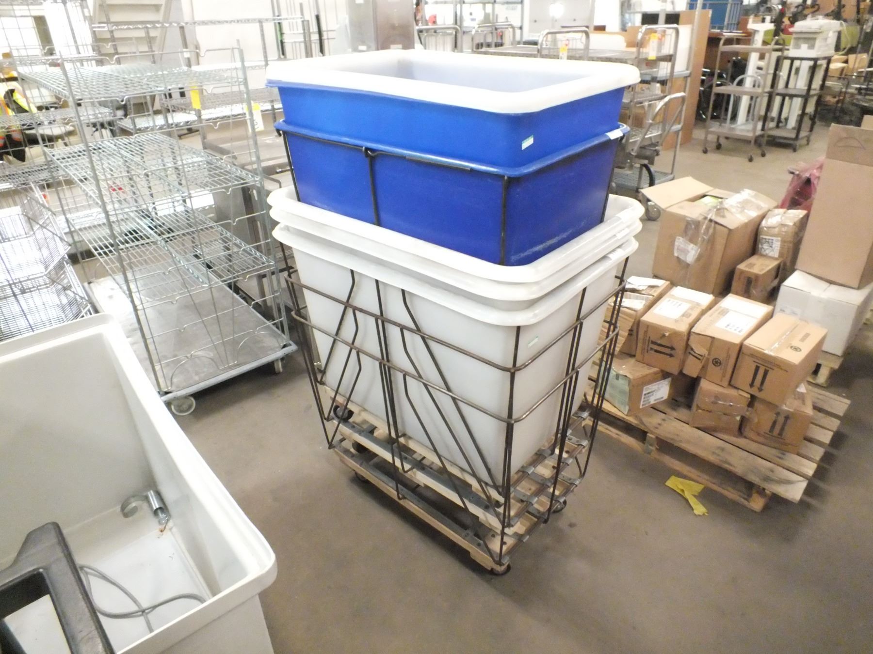 6 Heavy Duty Plastic Tubs, some are on wheels...used