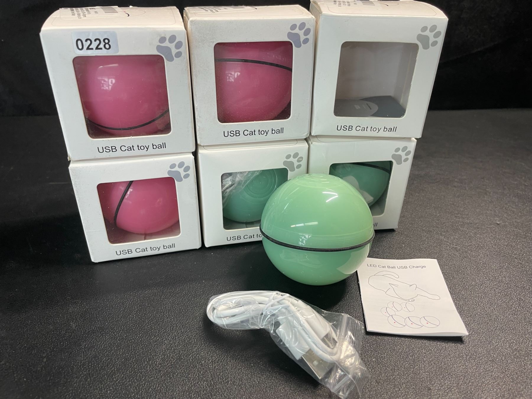 6 LED Light-Up Interactive Cat Ball Toys - Smart Rolling Ball Toys for Cats; Rechargeable - New