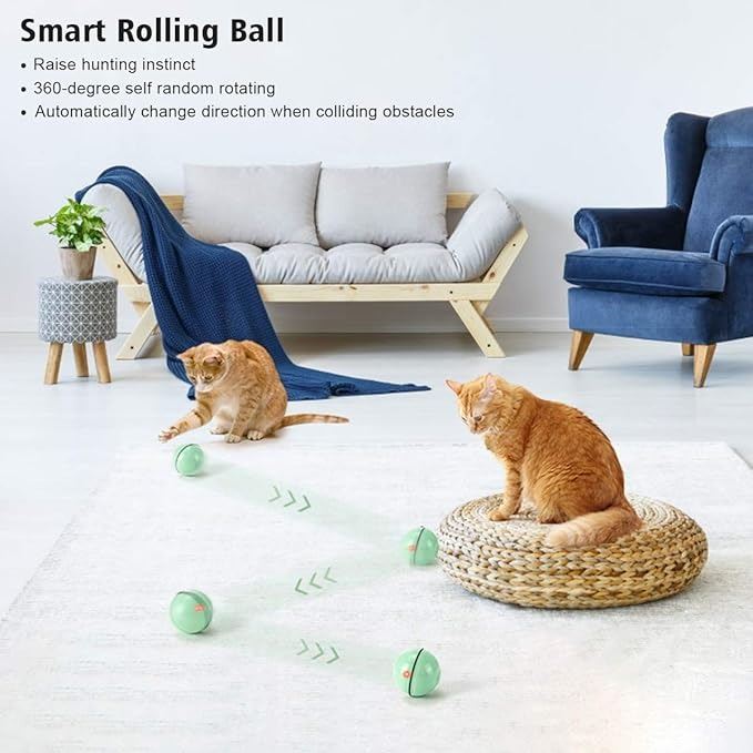 - Interactive Cat Toys Ball with LED Light, 360 Degree Self Auto Rotating Smart Ball, USB Rechargeable Spinning Cat Ball Toy,Stimulate Hunting Instinct Kitten Funny Chaser Roller Pet Toy