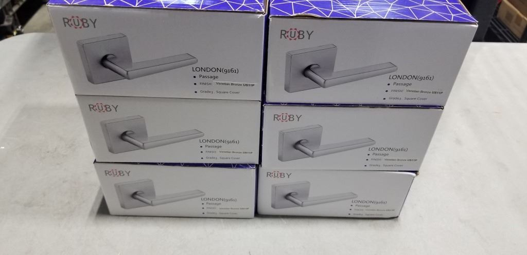 6 NEW LONDON DOOR HANDLES, US11P VENETIAN BRONZE FINISH, ANSI GRADE 3, SQUARE COVER