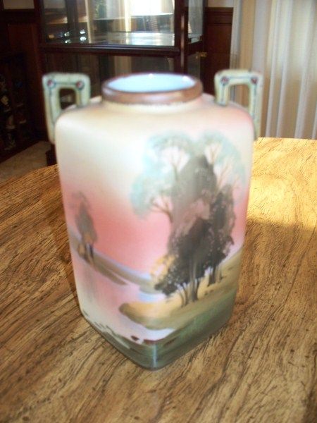 6" NIPPON VASE W/PASTEL LAKE SCENE