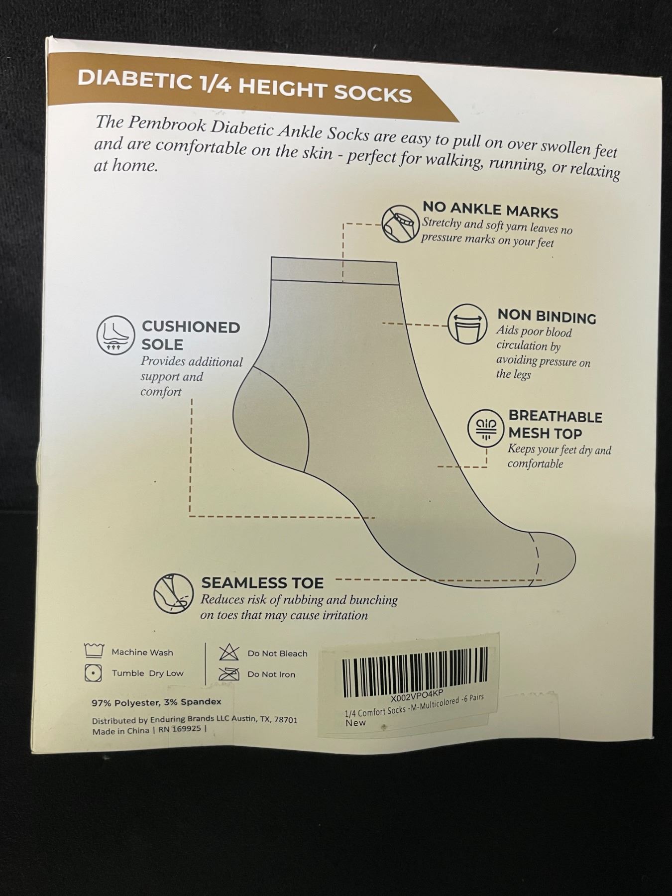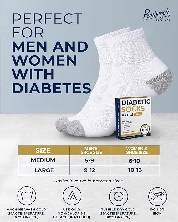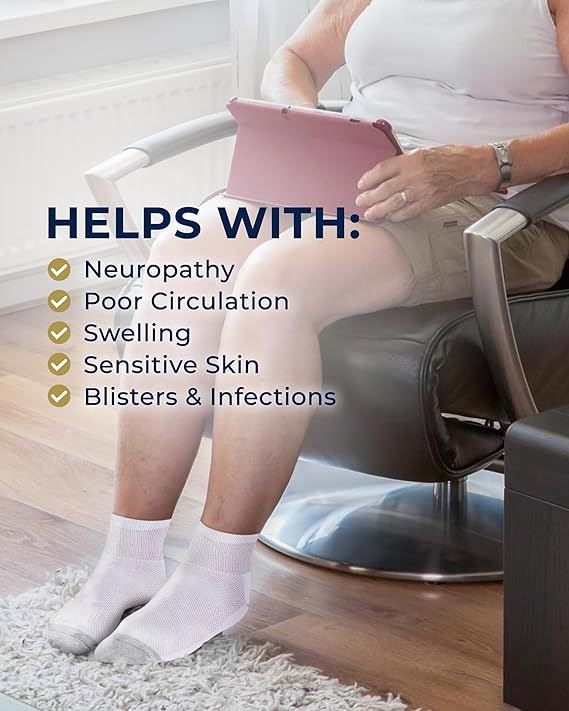 - Designed for people with diabetes, swelling/edema, sensitive feets, neuropathy, circulatory problems, etc.