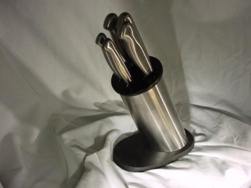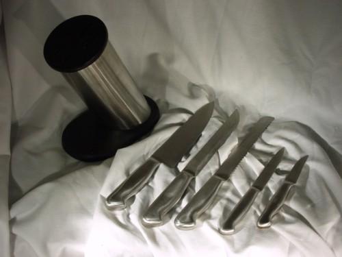 Set Includes: Chef Knife, Slicing Knife, Bread Knife, Utility Knife, Paring Knife and Block to Hold Knives.