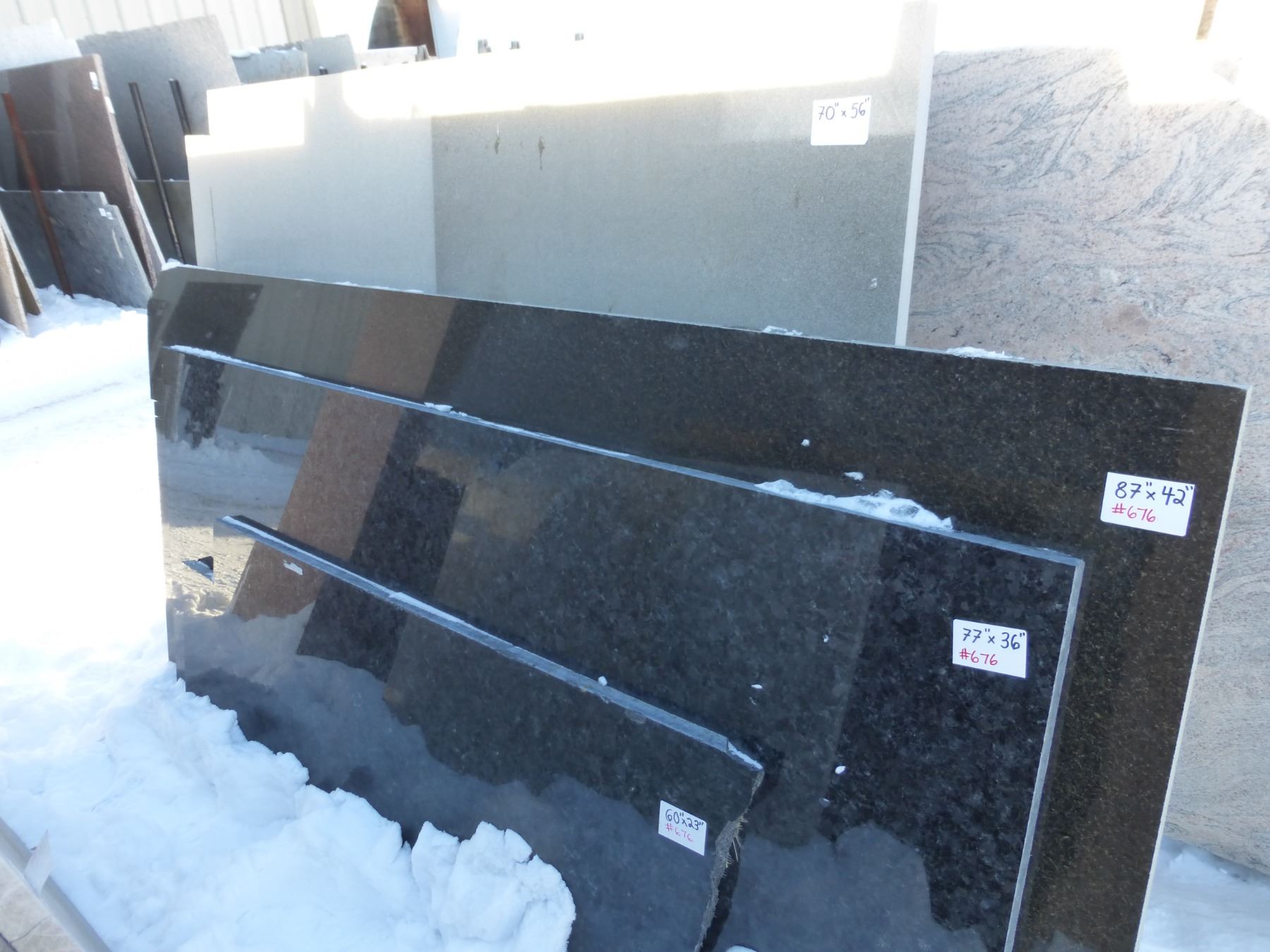 6- Slabs, Various sizes x 1 1/4" thick, Black pearl, Diamond black Granite and other various colors