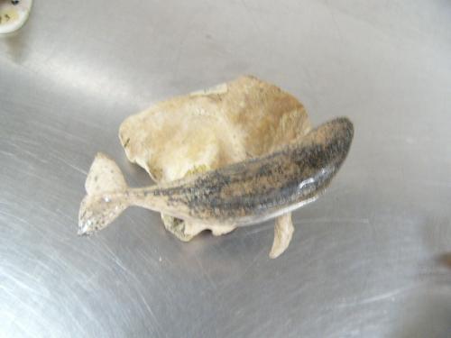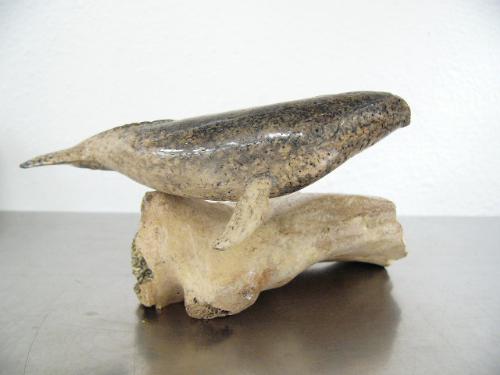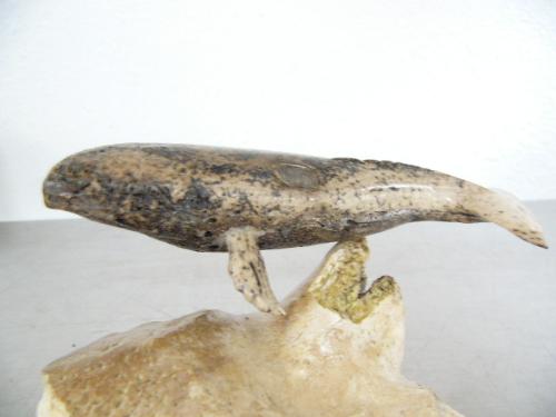 6" bone whale mounted on bone base- imported, not Alaskan ()