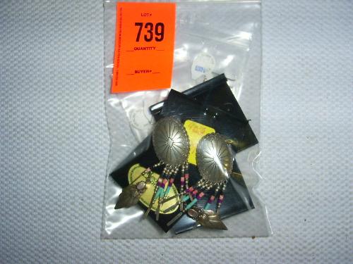 6 pairs earrings. Sterling silver. Some set with turquoise, pink shell, and stone heishe.