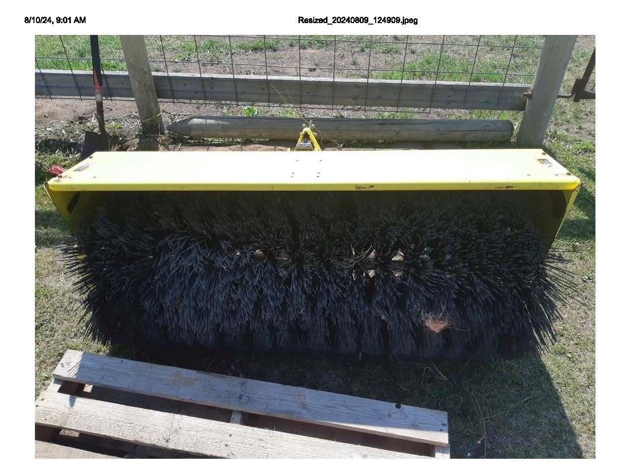 60" JD sweeper off a John Deere 4200 series tractor. PH Kirby- (780) 910-1461. Directions: From Vinca Bridge go east 6 km on hwy 38 to junction of 38 and 45. Turn left onto RR202 and go 3km north to TWP. RD. 572 turn right and go 1/4-mile, first farm house on the left white siding and blue roof.