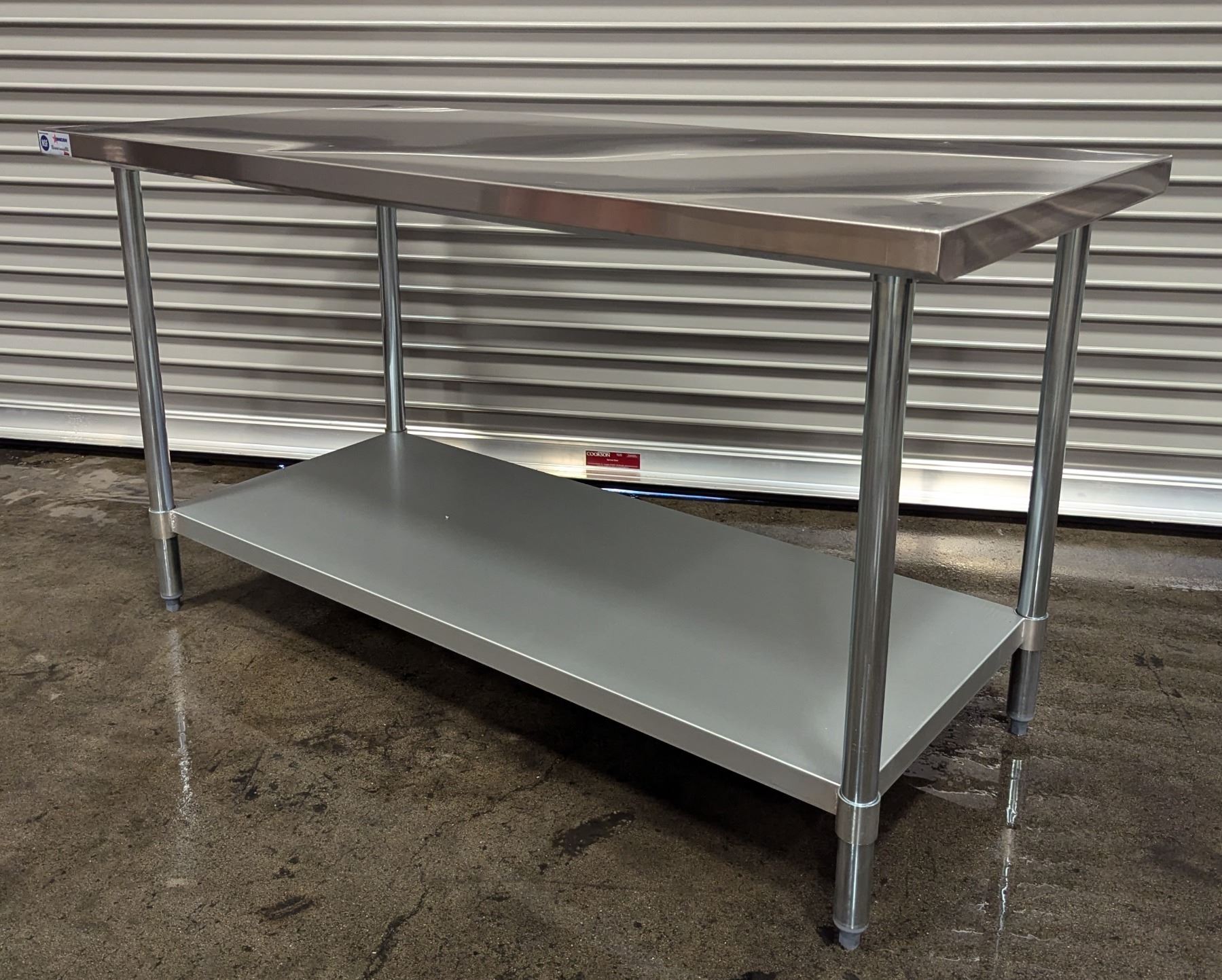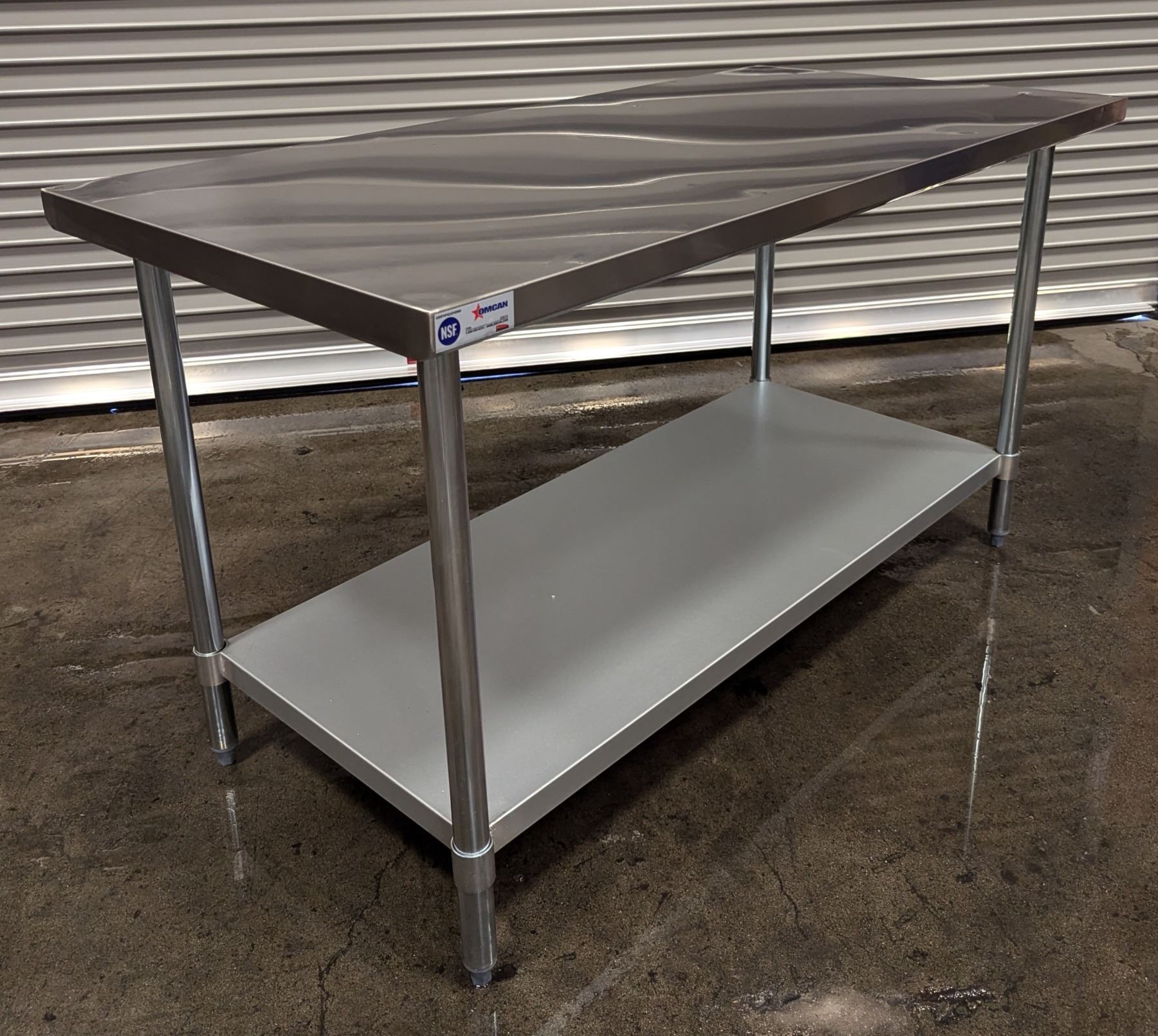 [New in Box,] 18 Gauge 430 Stainless Steel, Top Load Capacity: 679lbs, Undershelf Capacity: 396.8lbs, Fully Adjustable Undershelf, Plastic Bullet Feet (34" Height Adjustable from 33.5" to 34.5",) Galvanized Legs