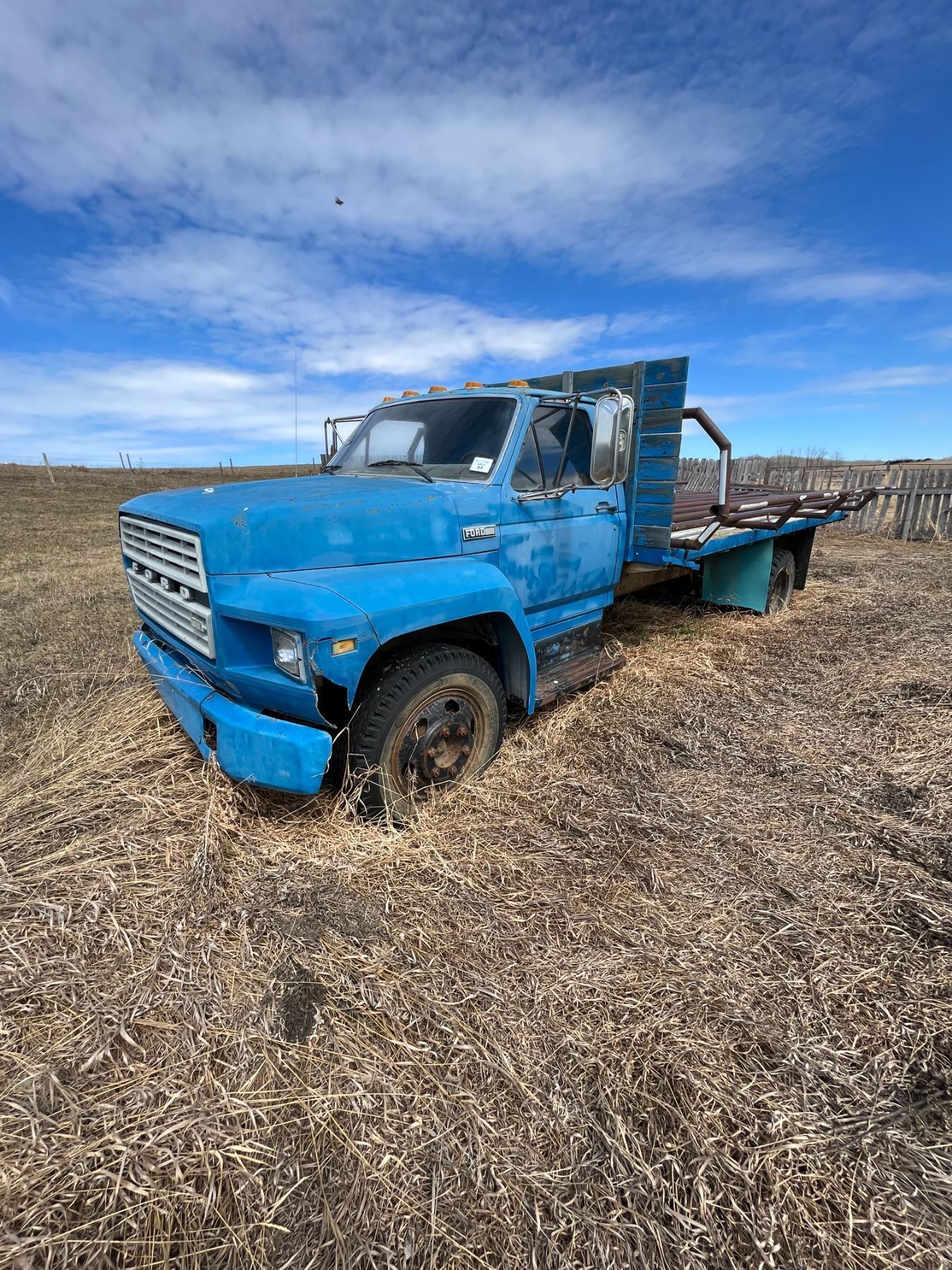 600 Ford single axle, c/w Bale deck, propane - Runs but doesn’t want to start right now