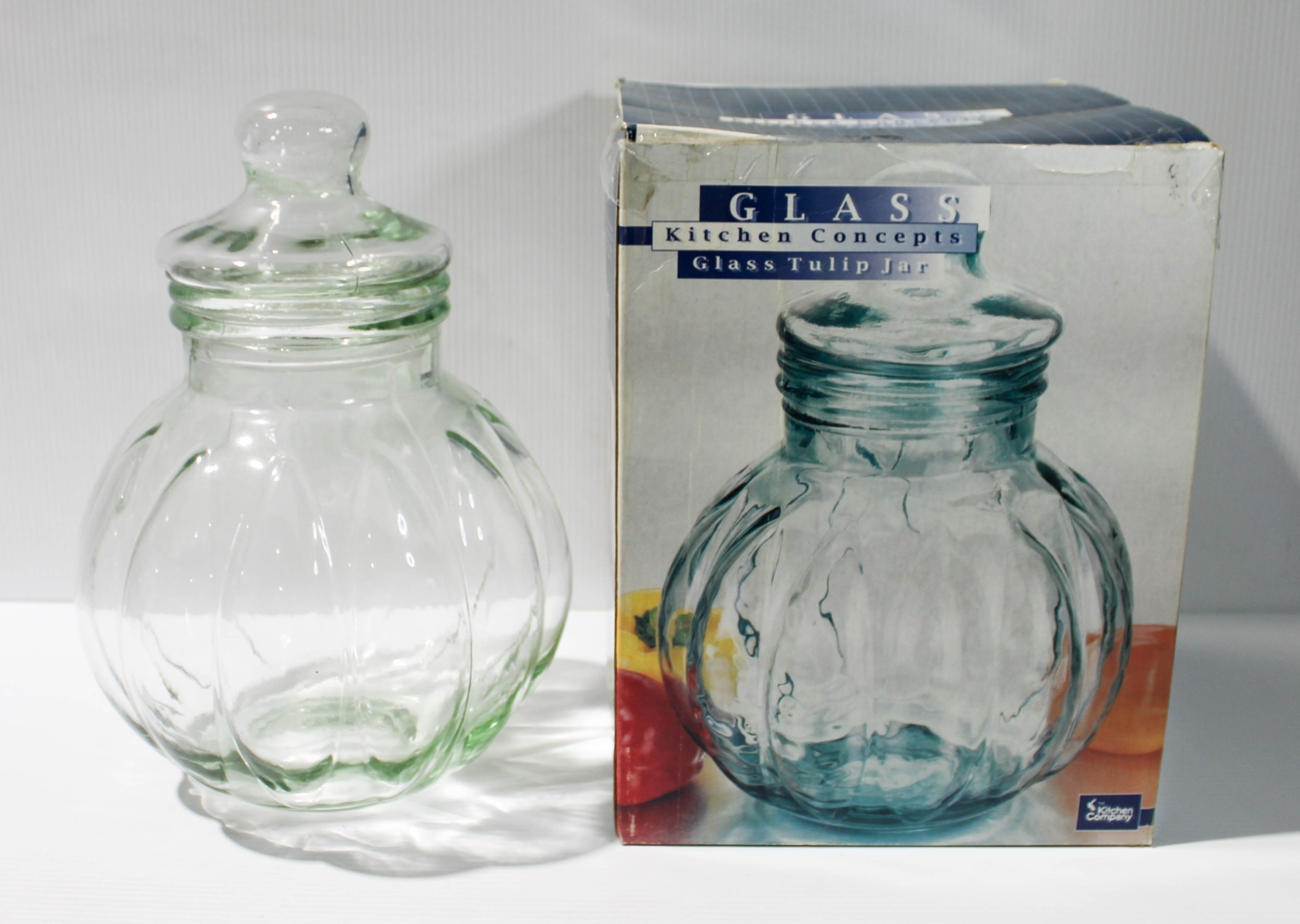 HAND BLOWN JAR SIZE APPROX.: 10" X 13"