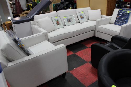 #7 WHITE FABRIC SHOWHOME 2 CHAIRS W SOFA