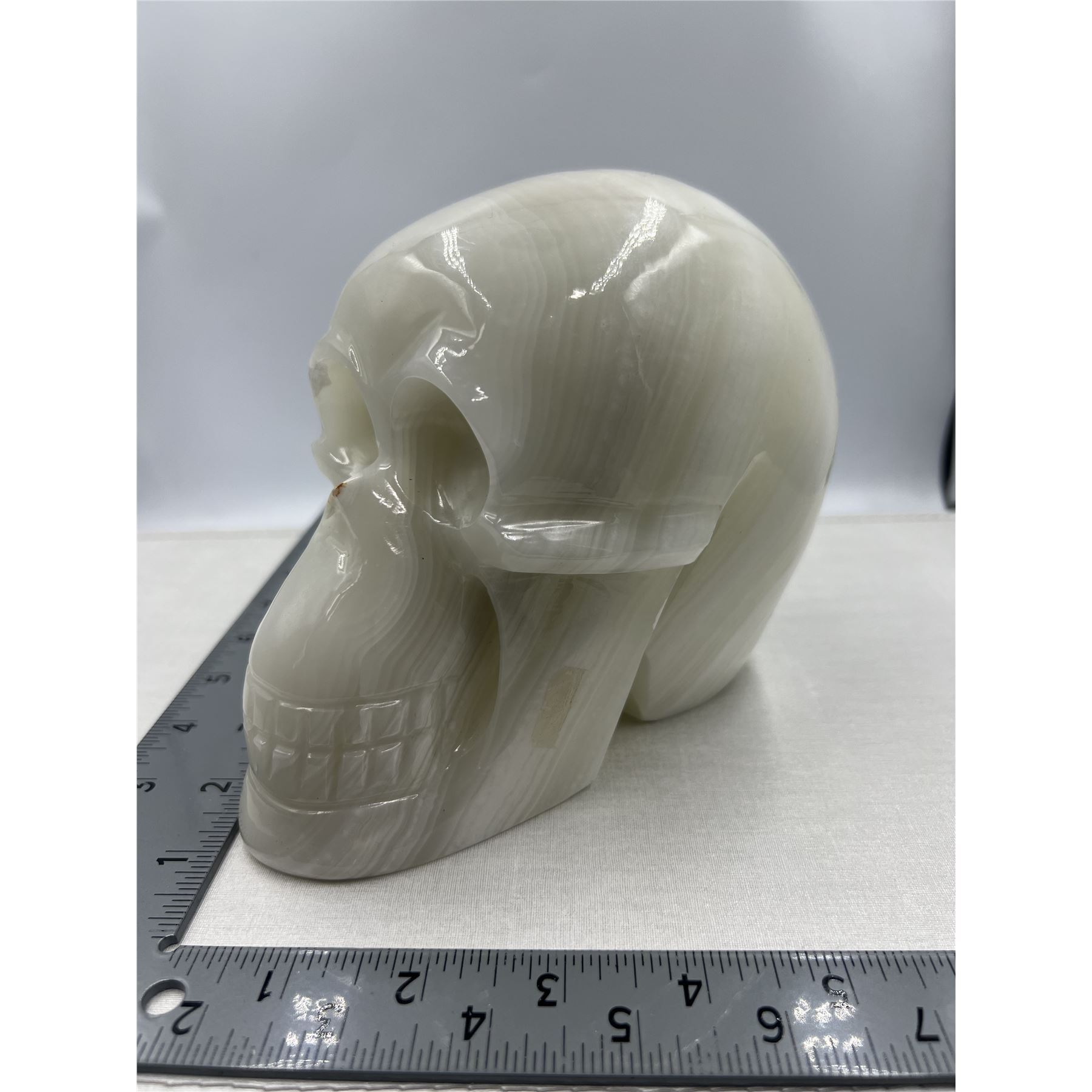 7 X 5.3 INCH LARGE ONXY CLACITE SKULL