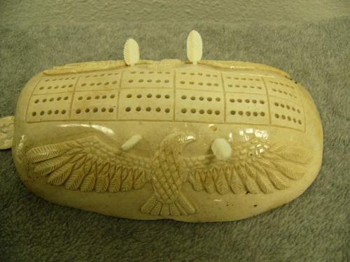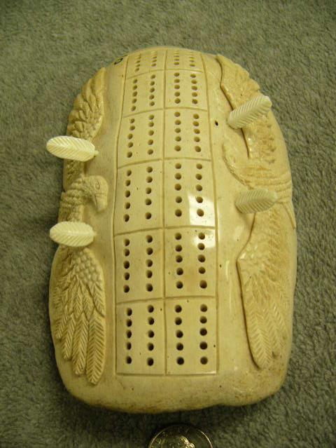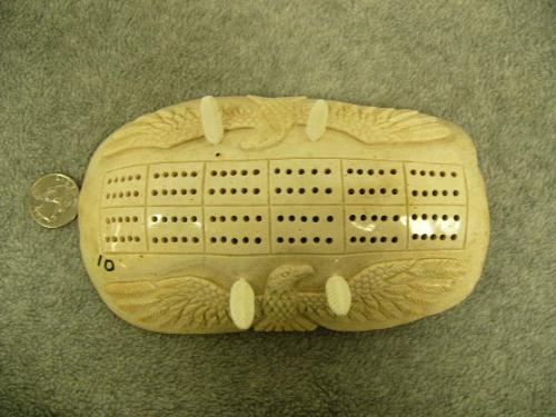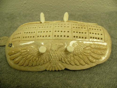 7" cribbage board done in walrus bone, relief carved with 2 eagles by Craig Niksik # 576F (2)