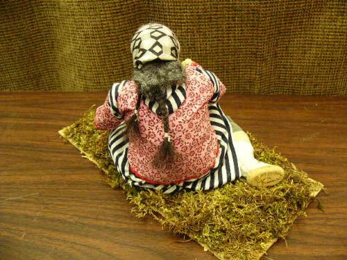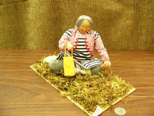 7" doll with carved wood face by Shelley Chamberlain, berry picker (152)