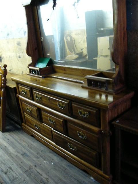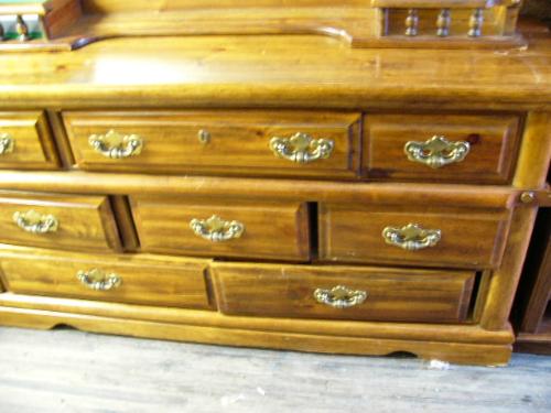 7-drawer dresser with lighted mirror; double bed/foot board (99)