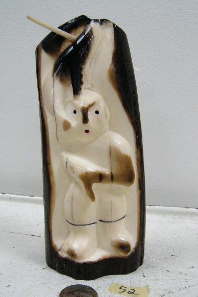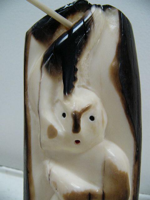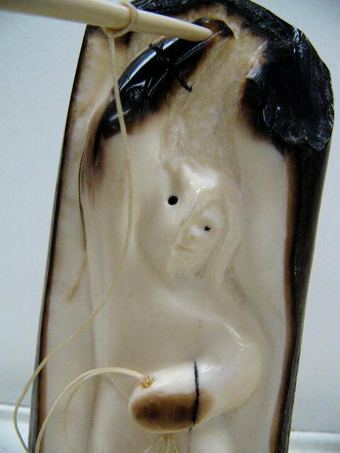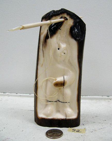 7" relief carved fossilized ivory of 2 different hunters by Iglaak from Koyuk (114)